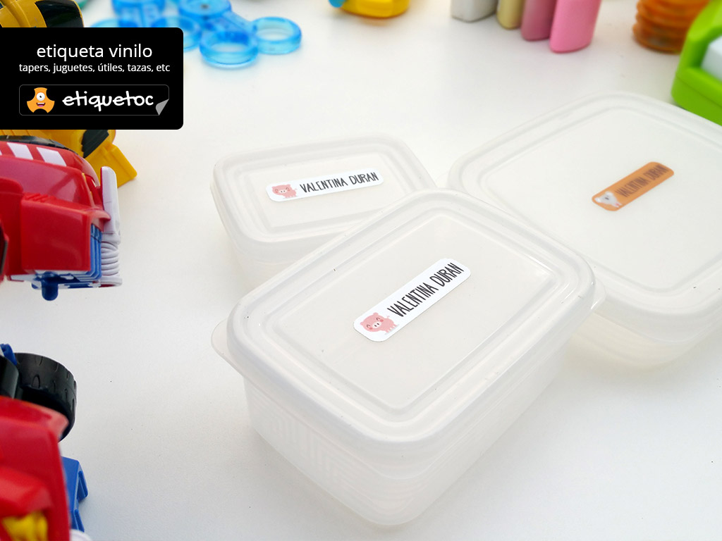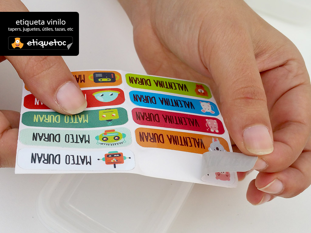 Con etiquetoc puedes diseñar etiquetas personalizadas de la forma más rápida y simple. Las etiquetas son de dos tipos: vinilo laminado para útiles escolares, fiambreras, libretas o inclusive para bambas y transfer para utilizar en ropa, delantales, bolsos, etc.