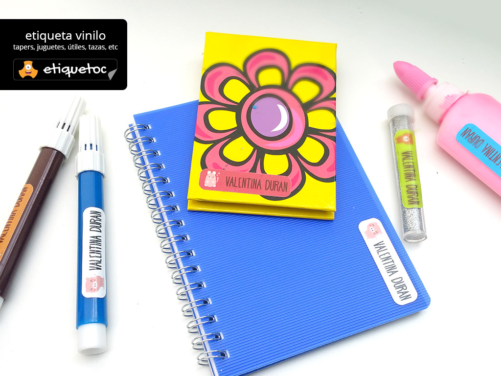 Con etiquetoc puedes diseñar etiquetas personalizadas de la forma más rápida y simple. Las etiquetas son de dos tipos: vinilo laminado para útiles escolares, fiambreras, libretas o inclusive para bambas y transfer para utilizar en ropa, delantales, bolsos, etc.